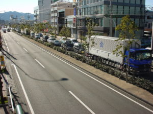 静岡県内 エコクリーンソイルによる国道沿い中央分離帯防草対策の施工事例と施工写真